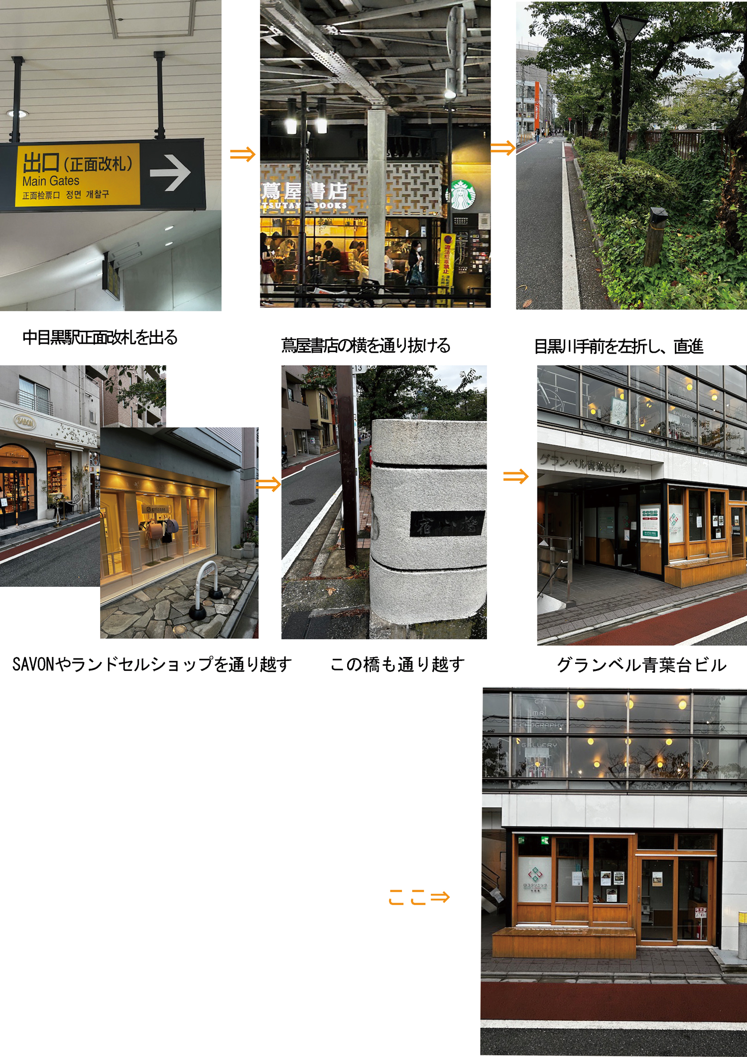 下記に道順をご案内しております。(1番出口から徒歩1分ほどです)