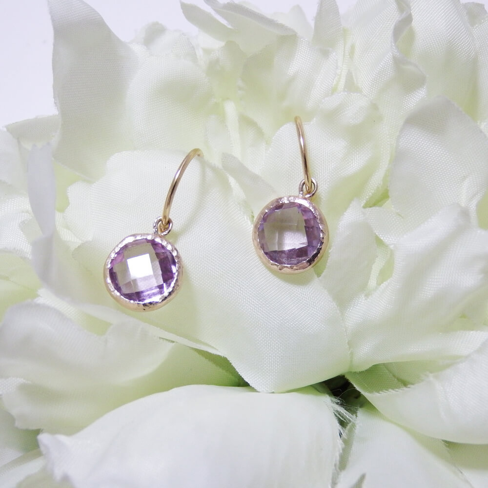 そんなラベンダーの香りも漂ってきそうな透き通ったラベンダーアメジストを使った身につけているだけで優しい気持ちになれそうなゴールドピアスをお届けします。