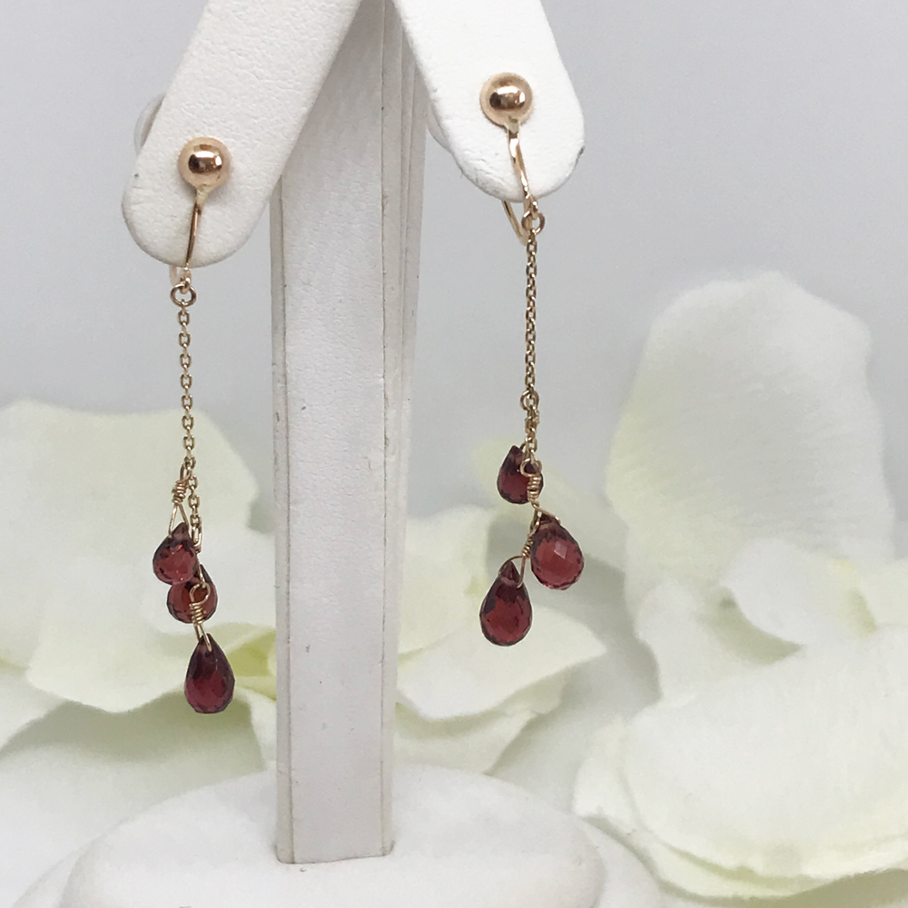 <ガーネットドロップカットイヤリング>
