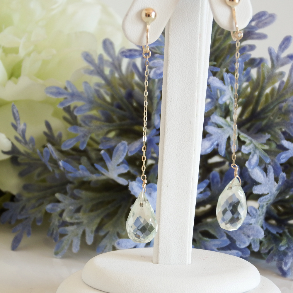 素材:グリーンアメジスト 約1.5cm x 1cm イヤリング及金属パーツはK10ゴールド