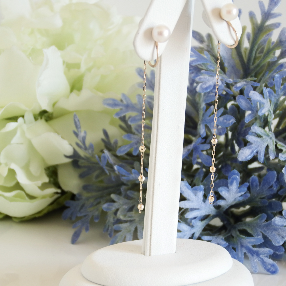 <あこやパールとカットボールチェーンのイヤリング>
