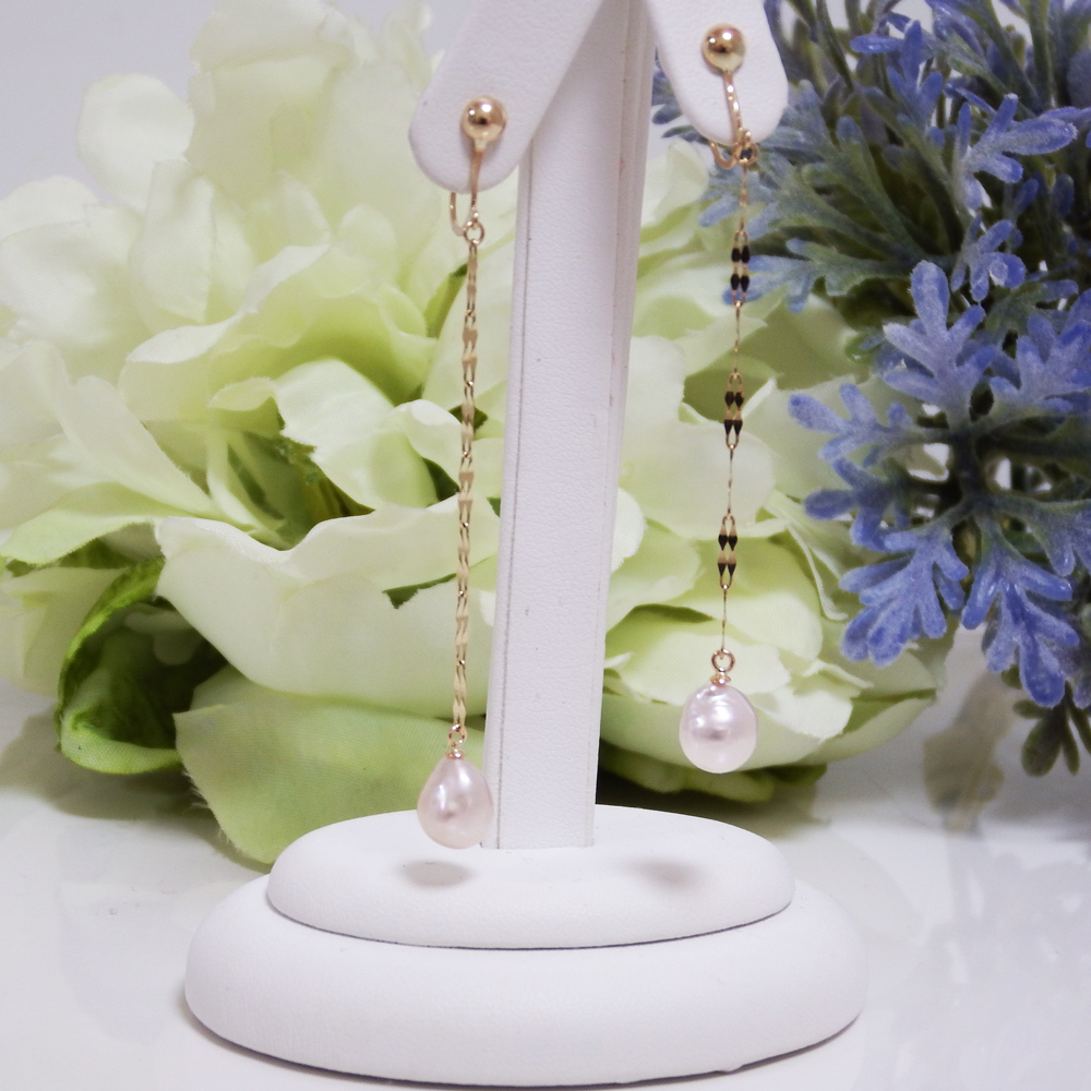 素材:バロックあこやパール 約9.3mm x 7.3mm イヤリング及金属パーツはK10ゴールド