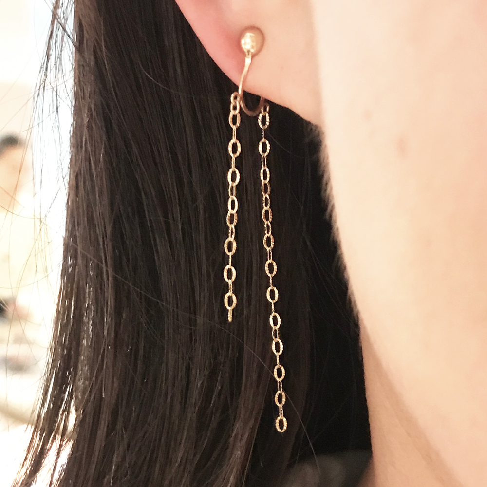 <ダブルチェーンがピアスをしているみたいなスタイリッシュなイヤリング>