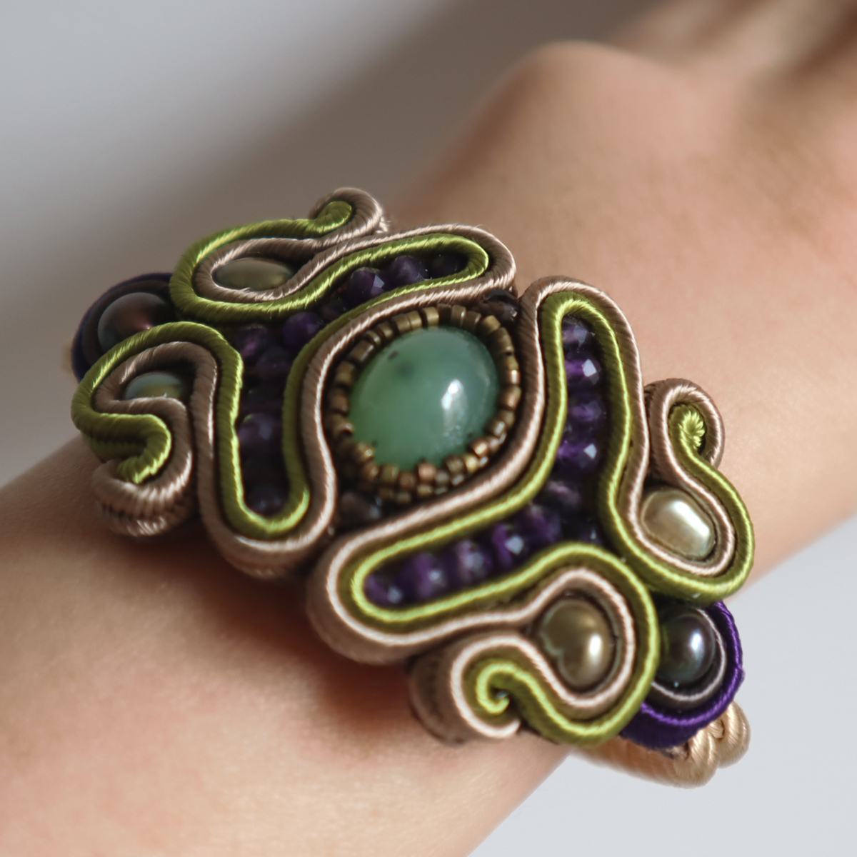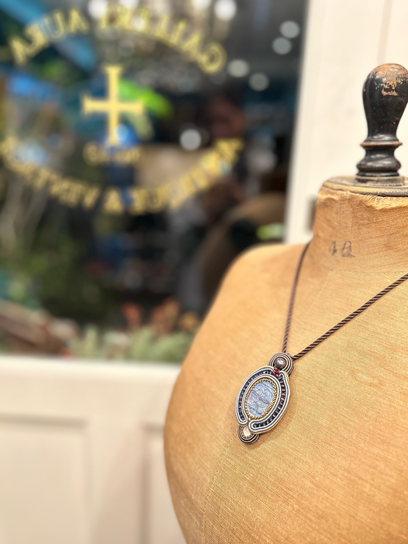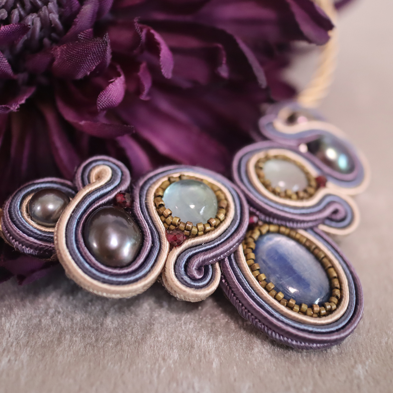 スペイン南部アンダルシア地方の古の建物に施された色とりどりのタイル壁面や少し朽ち果てた色彩などからインスピレーションを広げ、ヨーロッパのコード刺繍の技法であるソウタシエと淡水バロックパールと天然石を組み合わせたジュエリーコレクション