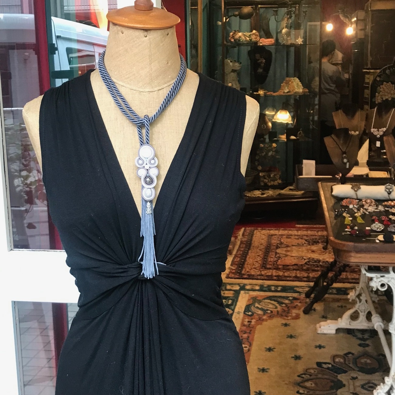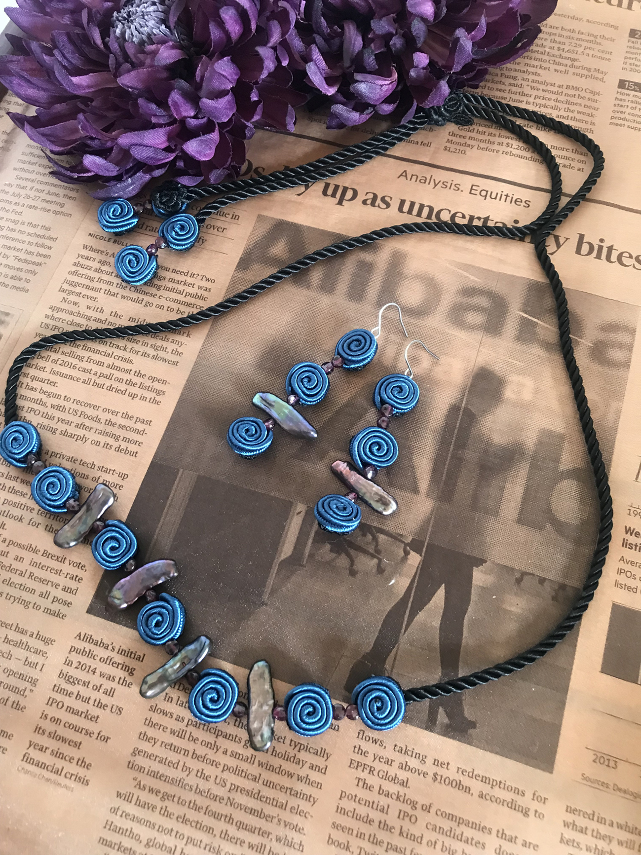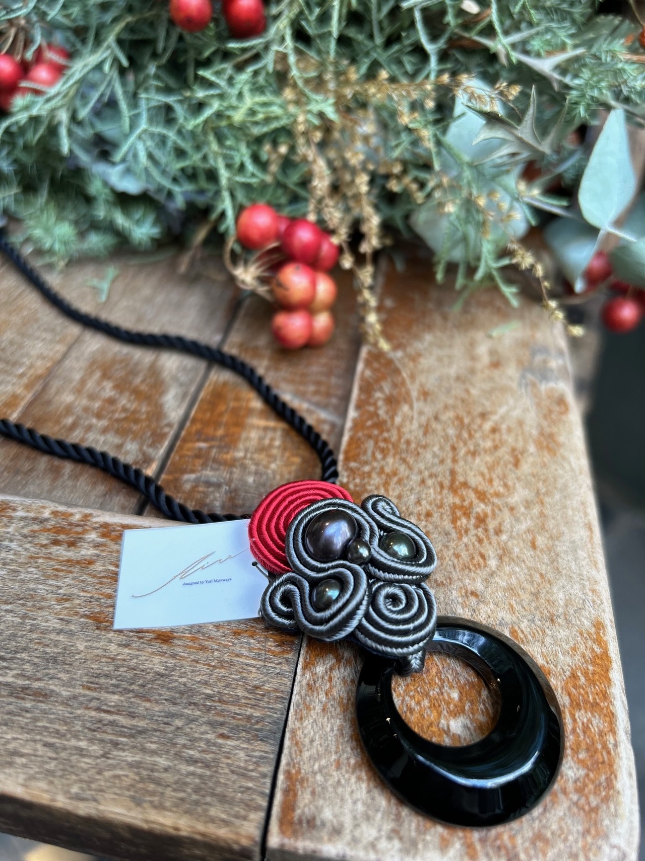 類似のデザインでも、使用するパールの形や大きさ、コードの色合わせによって全く同じものがない全て一点ものとなっています。すでに販売済みの作品も記録として掲載しております。